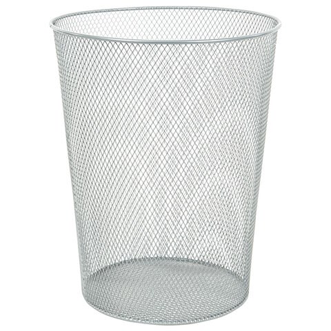 Изготовлена из металлической сетки серебристого цвета. Корпус расширяется к верху: диаметр основания составляет 17 см, а диаметр верхней части -22,5 см. Высота - 28 см, объем - 9 л. Легкость и компактность корзины позволяют перемещать её с одного места на другое. Корзина удобно помещается под рабочим столом. Рекомендуемый размер мешка для мусора - 32х55 см, объем - до 12 литров.