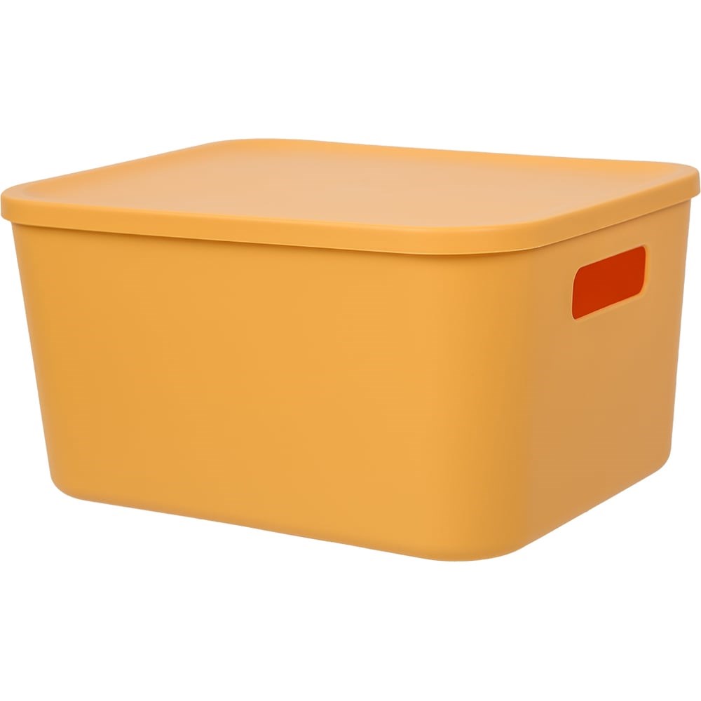 Корзина-короб с крышкой из коллекции «Оптима» от Handy Home изготовлена из прочного пластика для надежного хранения содержимого. В крышке есть специальные выемки для штабелирования корзин как одинакового, так и разного размера, что позволяет максимально эргономично хранить их на кухне, в гардеробной, детской, гараже, в офисе, на даче и в любом помещении. Такие корзины для хранения не впитывают запахи, легко моются, а их разные цвета (желтый, оранжевый и синий) очень удобны с точки зрения быстроты поиска нужной вещи. Материал: пластик.