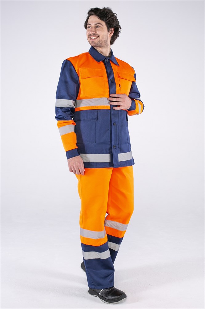 Костюм для дорожника (тк.Смесовая,210) п/к, оранжевый/т.синий