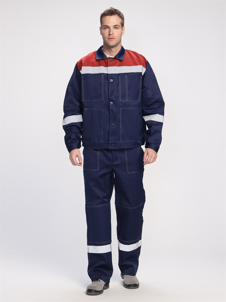Светоотражающая полоса 50 мм по кокеткам спинки и полочек, рукавам, низу брюк.