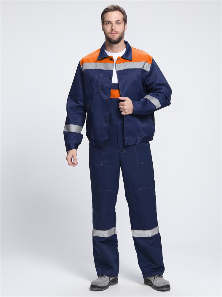 ХИТ ПРОДАЖ! Рабочий костюм «Легион-2 СОП», изготовленный в соответствии с ГОСТ, включает в себя два предмета: рабочая мужская куртка на пуговицах и полукомбинезон рабочий. Спецодежда мужская оснащена широкими светоотражающими полосами для безопасной работы в местах с плохим освещением. Благодаря усилительным накладкам в области колен и локтей, а также усилению плечевого и шагового шва, униформа отличается повышенной надежностью и износостойкостью. Рабочая куртка прямого кроя с регулировкой по объему на поясе не стесняет движения, очень удобна в работе. Для хранения записей предусмотрен нагрудный карман с отделением под ручку. Рабочий полукомбинезон дополняется бретелями с регулировкой по длине и кулиской на резинке, благодаря чему подходит мужчинам разной комплекции. На груди располагается закрывающийся на липучку карман, гульфик застегивается на пуговицы.