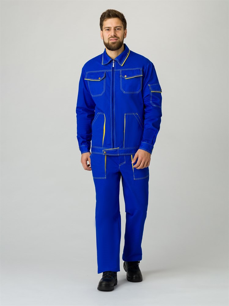 Костюм Лидер (тк.Саржа,250) брюки, васильковый/желтый