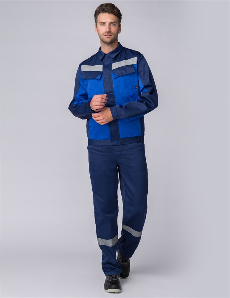 Мужской рабочий костюм «Мастер» состоит из двух предметов: куртка рабочая укороченная + полукомбинезон рабочий. Униформа снабжена широкими светоотражающими полосами 50 мм для комфортной работы в темное время суток. Благодаря контрастной отстрочке полукомбинезон выглядит стильно и модно, а качественная фурнитура отличается особой долговечностью. Нагрудные карманы куртки и полукомбинезона подходят для хранения важных записей и мелочей, т.к. закрываются с помощью клапана на липучке. Рабочая куртка дополняется скрытой молнией и боковыми карманами, что делает ее практичной и удобной. Рабочий полукомбинезон с регулировкой бретелей по длине прекрасно садится по фигуре. Спецодежда легко одевается и снимается благодаря центральной и боковой застежкам на пуговицы. Усилительные накладки на коленях гарантируют износостойкость и длительный период эксплуатации.
