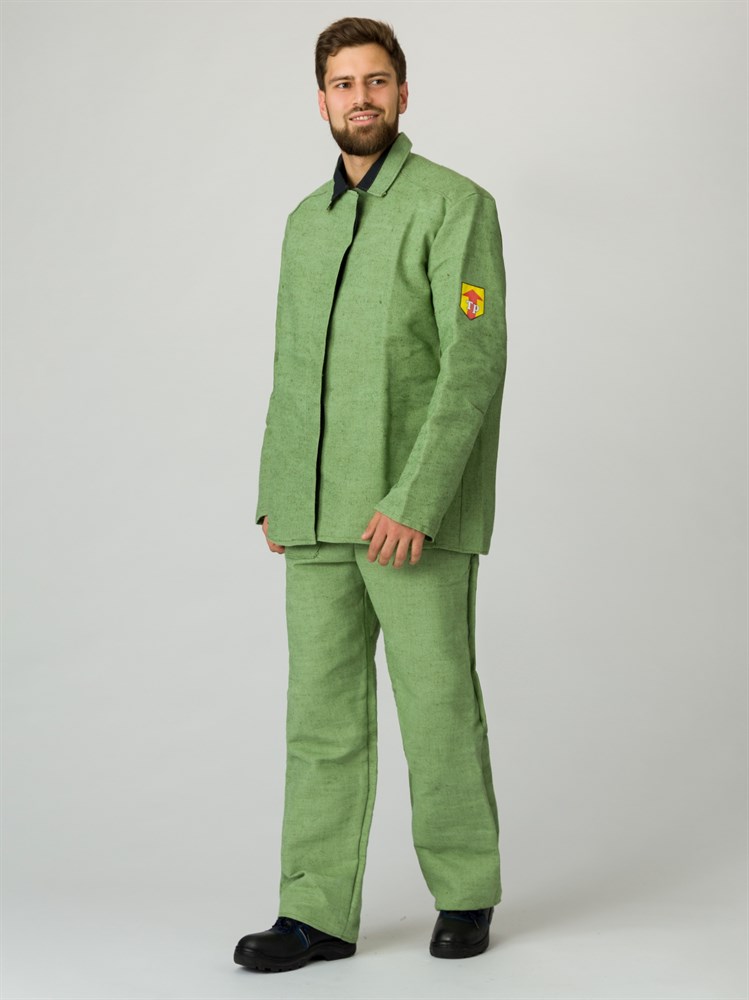 *Для выполнения работ, при которых расстояние от работающего до источника искр и брызг расплавленного металла более 2 м КУРТКА: - с центральной потайной застёжкой на пуговицы - на полочках карманы - под рукавами и на спинке под кокеткой вентиляционные отверстия БРЮКИ: - с откидывающейся передней частью, задние половинки с притачным поясом - застегивающимися спереди - с карманами в боковых застежках брюк - передние половинки с цельнокроеным поясом, пристегиваются к поясу задних половинок В данной позиции возможен разнотон от бежевого до зеленого!!!