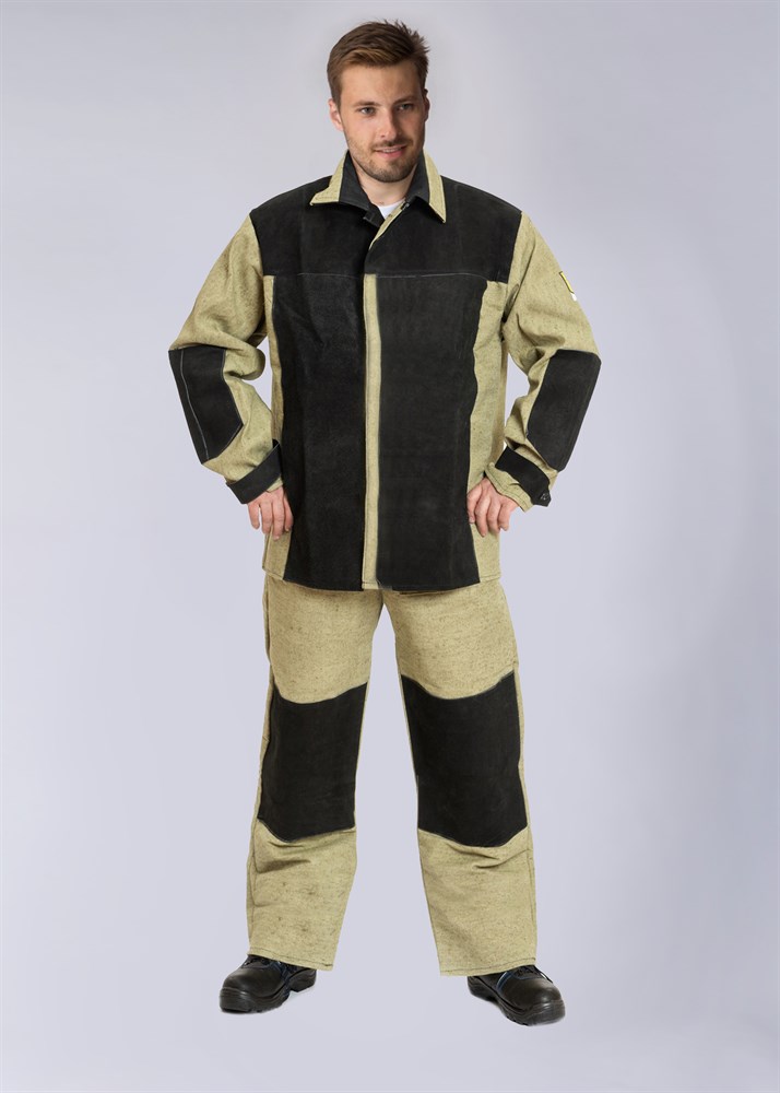 Костюм сварщика комбинированный 2 кл.защиты (тк.Брезент,550/Спилок S=1,5), черный/бежевый