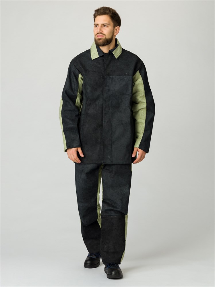 Костюм сварщика комбинированный 2 кл.защиты (тк.Брезент,550/Спилок S=2,3), черный/бежевый(А5)