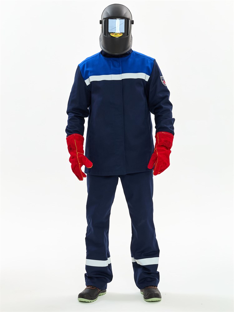 Костюм сварщика Велд-СОП 2 кл.защиты (тк.Хлопок-ОП,350) брюки, т.синий/васильковый