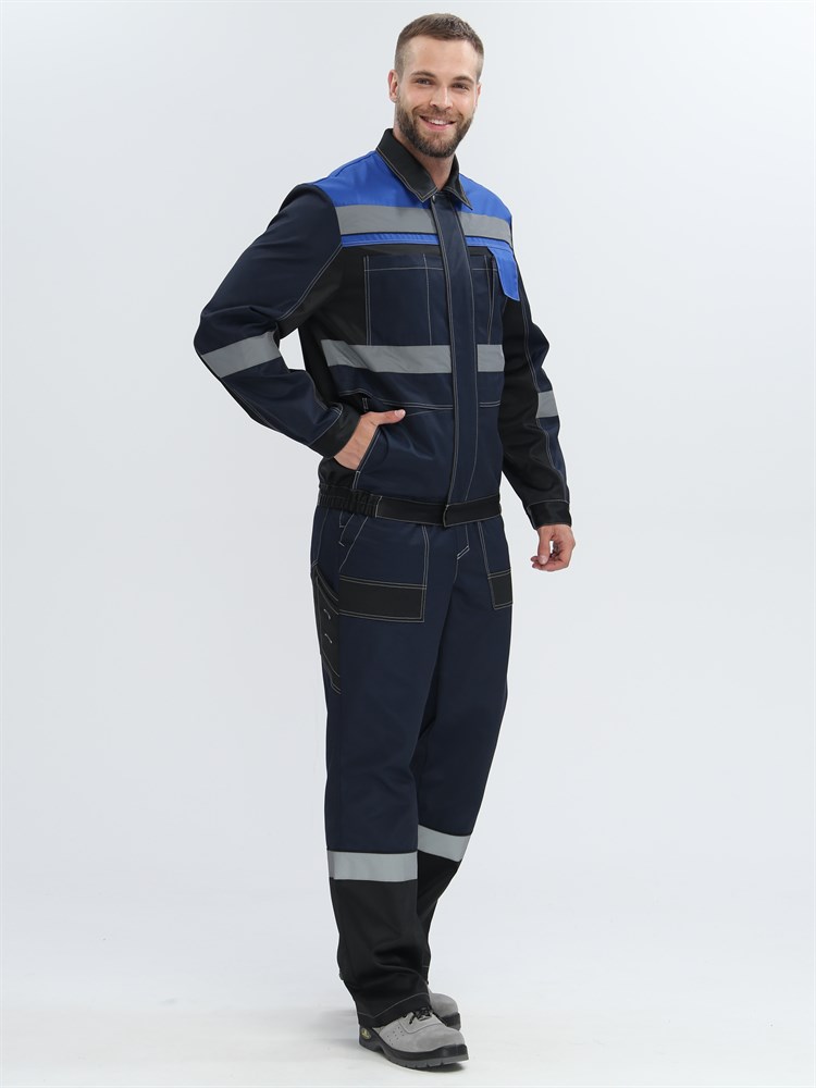 - по кокеткам, полочкам, спинке, рукавам и брючинам расположены световозвращающие полосы, что позволяет использовать костюм в условиях плохой видимости