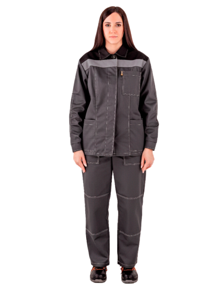 Костюм женский Техник-1 СОП (тк.Саржа,250) брюки, серый/черный