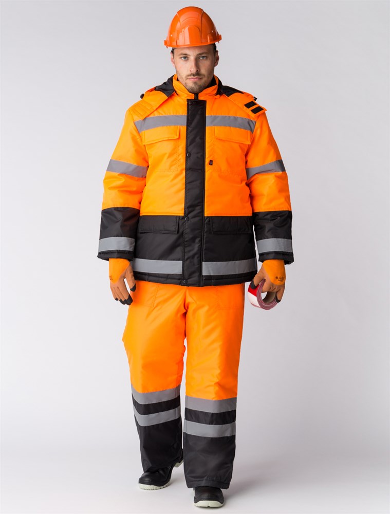 Костюм зимний для дорожника (тк.Оксфорд) брюки, оранжевый/черный