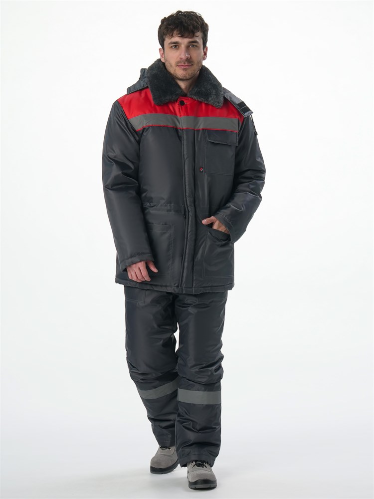 Костюм зимний Труженик-Ультра-2 (тк.Оксфорд) п/к, т.серый/красный