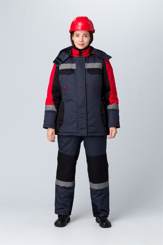 Костюм зимний женский Вектрон-2 СОП У. (тк.Смесовая,240) п/к, черный/красный/серый