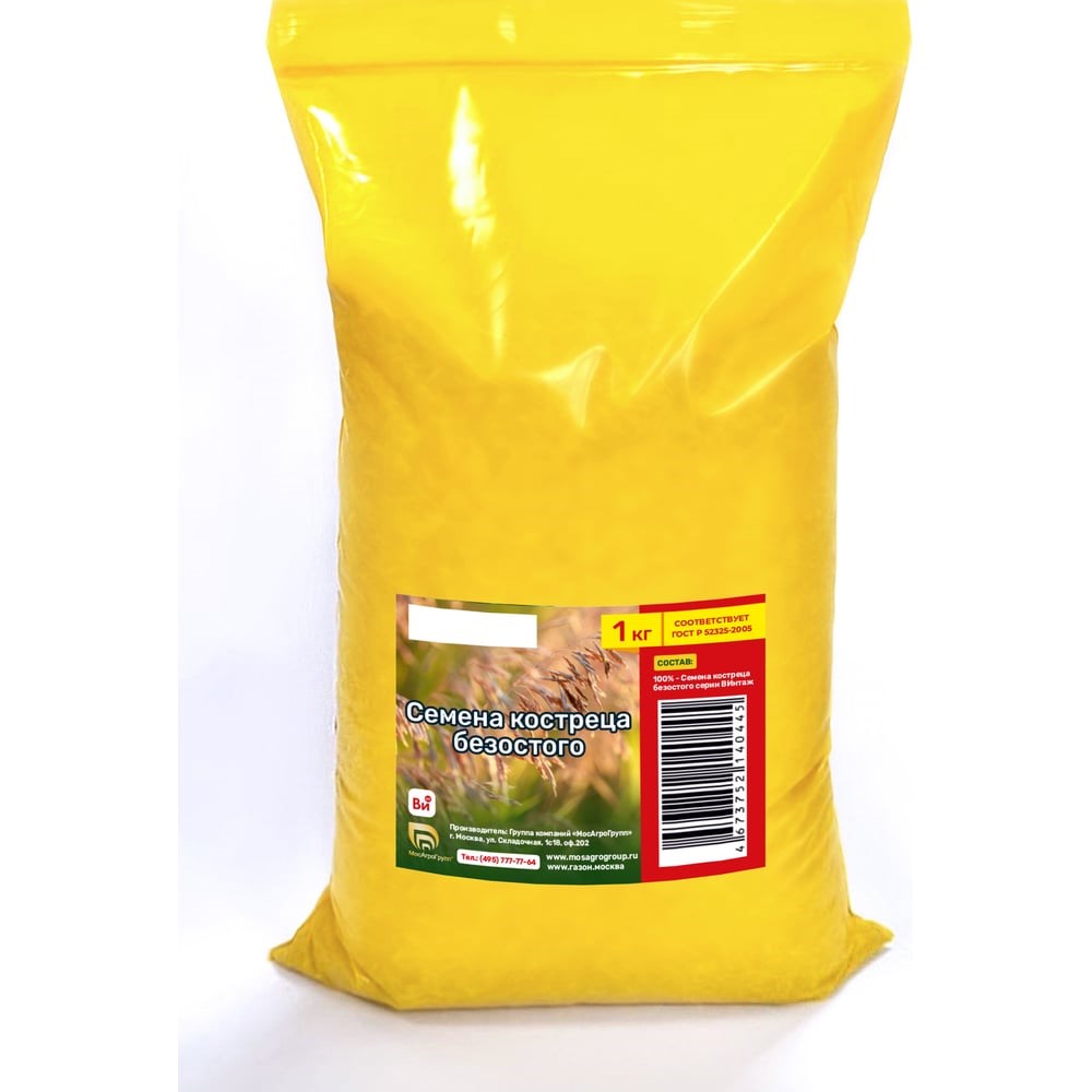 Семена костреца безостого МосАгроГрупп 1 кг МАС000009 – это одна из самых ценных кормовых трав, которая также отлично подходит для газонов, спортивных площадок, укрепления гидротехнических дамб и берегов искусственных водоемов. Ценность растения, как кормовой культуры, состоит в том, что оно может давать три укоса в год, а цена семян костреца очень быстро окупается – это очень быстрорастущая трава, которая достигает наибольшей производительности уже на второй-третий год культивации. Трава (костер безостый) неприхотлива в процессе культивирования, но растет не на всех почвах. Наиболее подходит она для суглинков, супещаных грунтов и почв с высоким содержанием торфа. На глинистых почвах и в местах с высоким залеганием грунтовых вод получить высокий урожай сложно. Растение отличается хорошо развитой корневой системой мочковатого типа, расположенной на глубине до 15 см. В процессе развития корни могут достигать глубины до 2 м, что позволяет траве легко переносить засухи. Кроме кормового производства в сельском хозяйстве, костер отлично подходит для газонов. Особенность его корней состоит в том, что из их узлов образуются новые кусты, а само растение быстро восстанавливается после скашивания и образует много точек роста. Культура легко переносит вытаптывание, а сплетающиеся корневища соседних растений укрепляют основание газона, что особенно важно в первые годы эксплуатации.