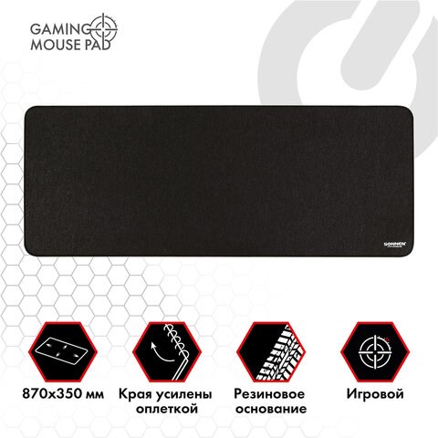 Коврик для мыши и клавиатуры большой SONNEN "WIDE RANGE", резина + ткань, 870х350х4 мм, чёрный, 513315