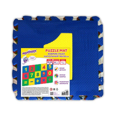 Коврик-пазл напольный 1,5х0,9 м, мягкий, "Учим цифры", 15 частей 30х30 см, толщина 1 см, ЮНЛАНДИЯ, 664659