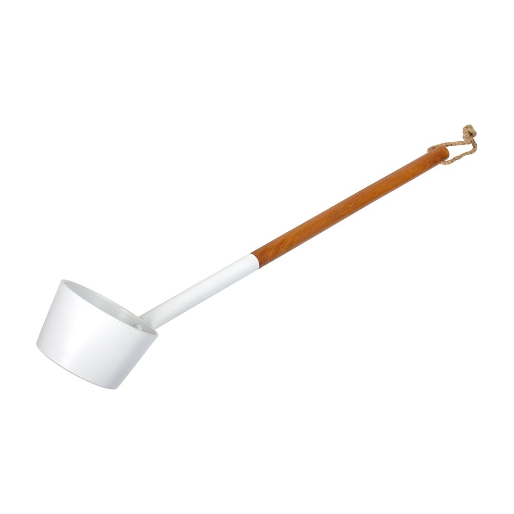 Ковш из алюминия Банные Штучки 47 см, белый 41289 используется в бане или в сауне. Им можно черпать воду или обливаться. Изготовлен из алюминия, устойчивого к механическим повреждениям. Для удобства имеет длинную деревянную ручку.