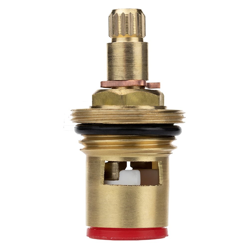 Кранбукса мет./керам. под крест, MasterProf 1/2", 7.5х15, пов. 180 град. ИС.130420 с дополнительной резьбой, используется для двуручковых (с двумя маховиками) смесителей. Внутренний запорный элемент в данной кран-буксе выполнен из двух металлокерамических тщательно отполированных дисков (пластин) с отверстиями (статичного и поворотного), совмещение или развод которых обеспечивает работу смесителя. От закрытия до открытия всего пол оборота ручки смесителя. Срок службы до 5 лет (износ керамических дисков) На данной кран-буксе присутствует дополнительная резьба М24 на юбке кран-буксы для подсоединения маховика. Достоинства керамической кран-буксы: бесшумность, длительный период эксплуатации, легкость включения и отключения подачи воды.