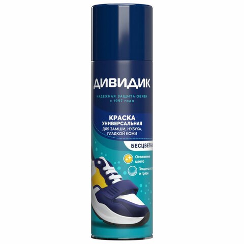 Краска аэрозольная для обуви бесцветная универсальная 250 мл, ДИВИДИК, 4600104034541