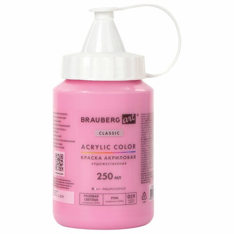 Краска акриловая художественная BRAUBERG ART CLASSIC, флакон 250 мл, РОЗОВАЯ СВЕТЛАЯ, 191710