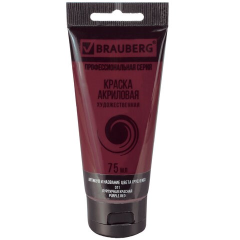 Краска акриловая художественная BRAUBERG ART CLASSIC, туба 75 мл, ПУРПУРНАЯ КРАСНАЯ, 191084