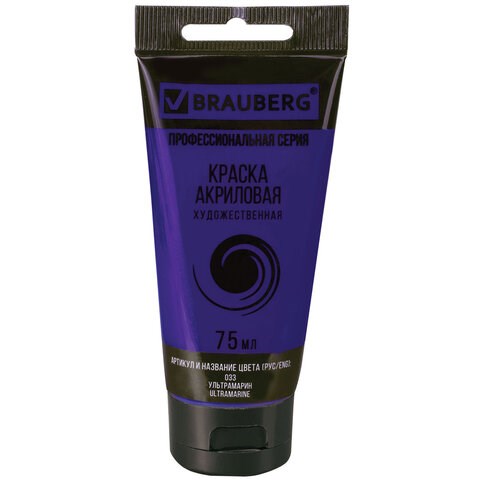 Краска акриловая художественная BRAUBERG ART CLASSIC, туба 75 мл, УЛЬТРАМАРИН, 191095