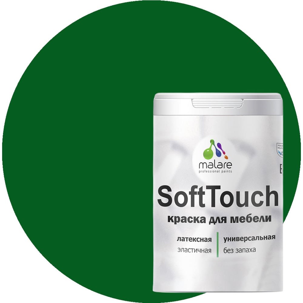 Краска для мебели, кухонных фасадов MALARE SoftTouch матовая, зеленый мичиган, 2 кг 2036773367826 предназначена для защитно-декоративного окрашивания любых деревянных, минеральных и металлических поверхностей, как фасадных, так и интерьерных. Обладает высокой износостойкостью и экономичностью. Материал пожаро- и взрывобезопасен. Не смешивать с другими красками и органическими растворителями. Рекомендована для окрашивания: мебели кровель и цоколей фасадов и интерьеров любых деревянных изделий