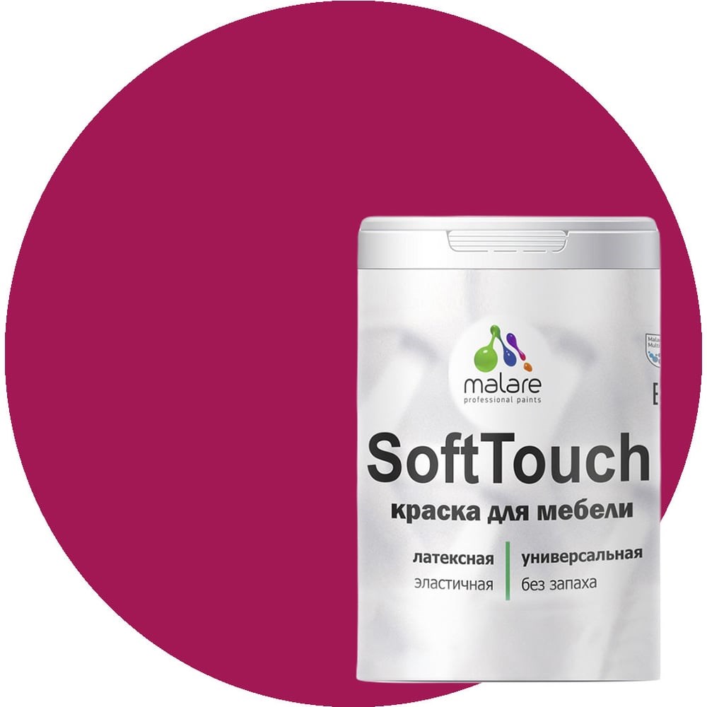 Краска для мебели, кухонных фасадов MALARE SoftTouch матовая, амарантово-пурпурный, 2 кг 2036747533158 предназначена для защитно-декоративного окрашивания любых деревянных, минеральных и металлических поверхностей, как фасадных, так и интерьерных. Обладает высокой износостойкостью и экономичностью. Материал пожаро- и взрывобезопасен. Не смешивать с другими красками и органическими растворителями. Рекомендована для окрашивания: мебели кровель и цоколей фасадов и интерьеров любых деревянных изделий