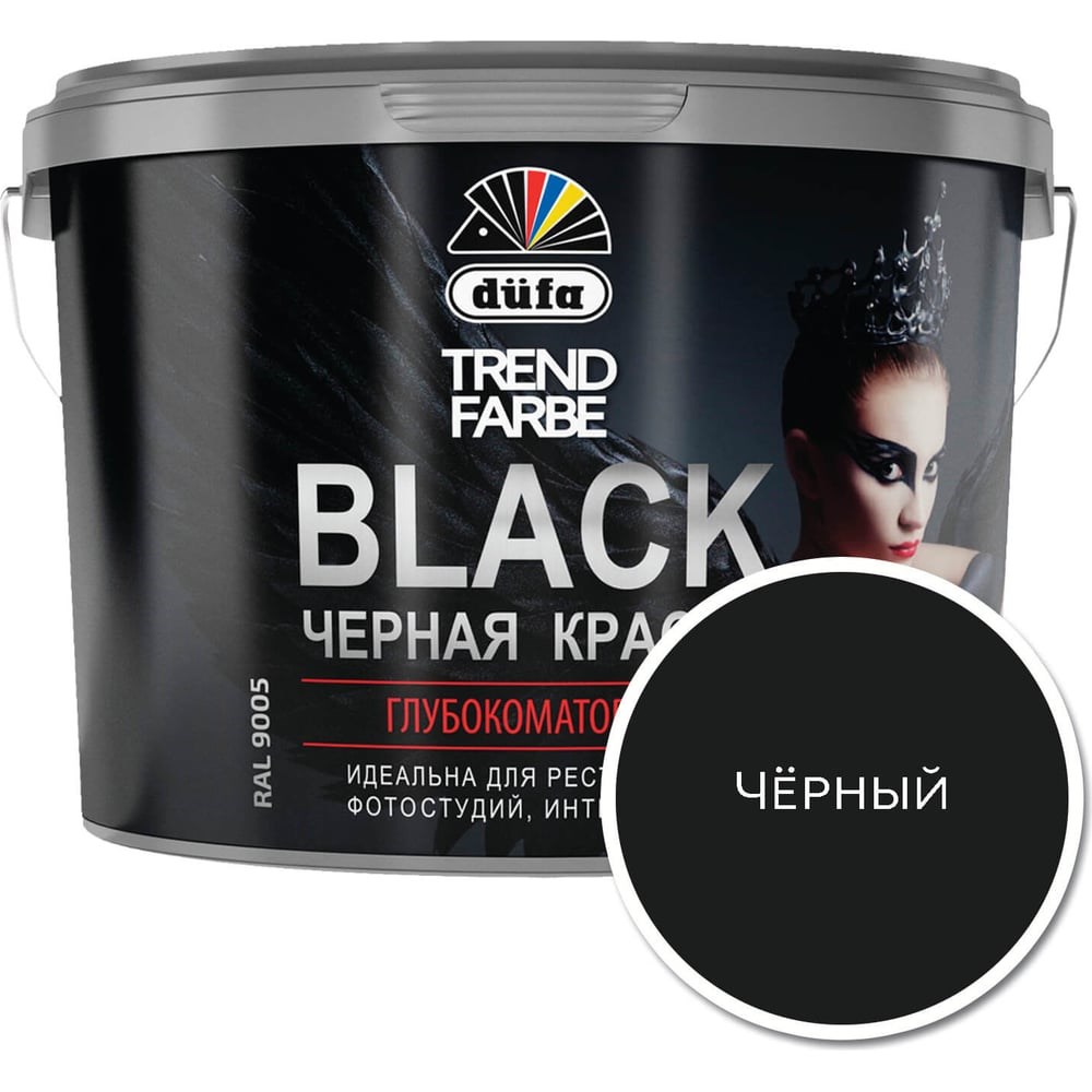 Краска Dufa TREND FARBE ВД BLACK RAL 9005, 5 л МП00-006782 - готовая к применению дисперсионная краска предназначена для обработки стен и потолков внутри помещений с умеренной влажностью, таких как спальни, гостиные, кабинеты, коридоры, гардеробные и т.п. Идеальна для ресторанов, фотостудий, интерьеров.