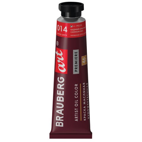 Краска масляная художественная BRAUBERG ART PREMIERE, 46 мл, проф. серия, КАДМИЙ КРАСНЫЙ, 191408