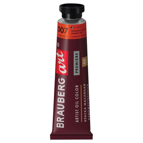 Краска масляная художественная BRAUBERG ART PREMIERE, 46 мл, проф. серия, ОРАНЖЕВО-КРАСНАЯ, 191405