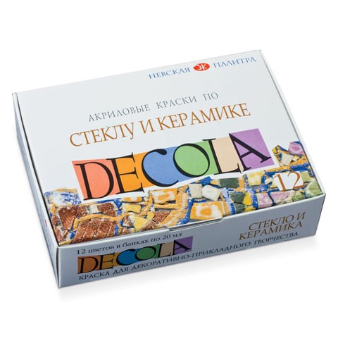 Краски акриловые по стеклу и керамике "Декола", 12 цветов по 20 мл, в баночках, Невская Палитра, 4041114