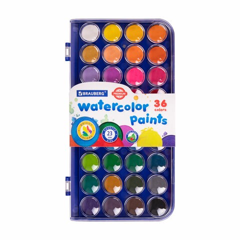 Краски акварельные BRAUBERG "PREMIUM" 36 цветов, круглые кюветы 23 мм, пенал, 191746