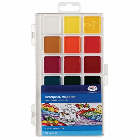 Краски акварельные ГАММА "Классическая", 18 цветов, медовая, пластиковый корпус, европодвес, 1009196