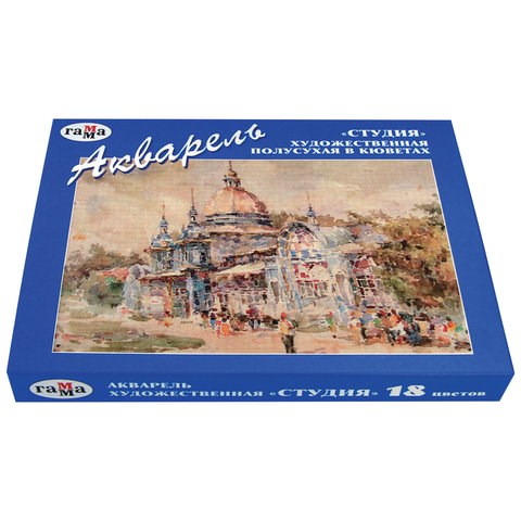 Краски акварельные художественные ГАММА "Студия", 18 цветов, кювета 2,5 мл, картонная коробка, 215003