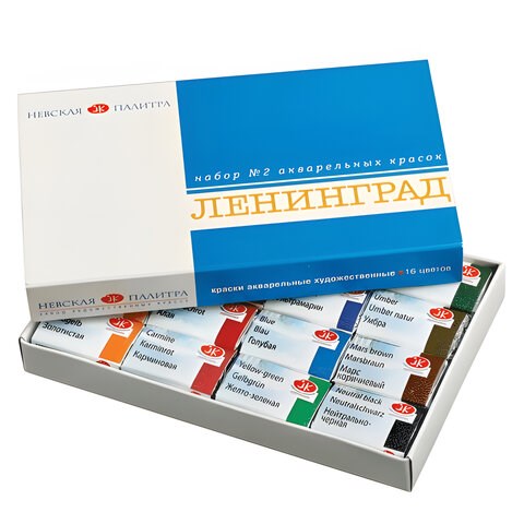 Краски акварельные художественные "Ленинград-2", 16 цветов, кювета 2,5 мл, картонная коробка, Невская Палитра, 1941020