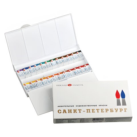 Краски акварельные художественные "Санкт-Петербург", 24 цвета, кювета 2,5 мл, пластиковая коробка, Невская Палитра, 1942017