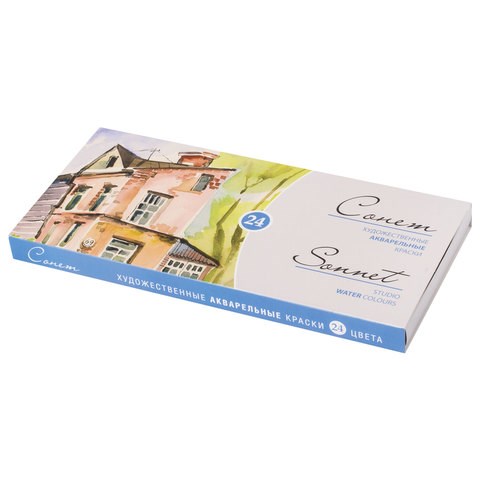 Краски акварельные художественные "Сонет", 24 цвета, кювета 2,5 мл, картонная коробка, Невская Палитра, 3541139