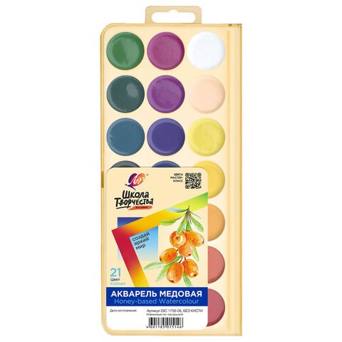 Краски акварельные ЛУЧ "Школа творчества", 21 цвет, медовые, без кисти, пластиковая коробка, 29С 1758-08