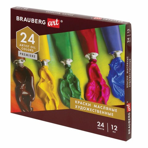 Краски масляные художественные BRAUBERG ART PREMIERE, 24 цв. по 12 мл, в тубах, 191457