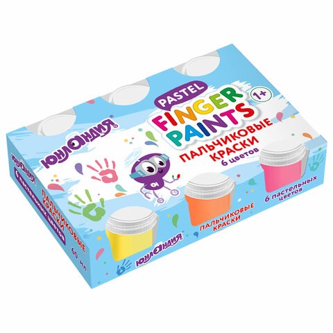 Краски пальчиковые для малышей от 1 года, пастельные цвета, 6 по 60 мл, ЮНЛАНДИЯ, 192569