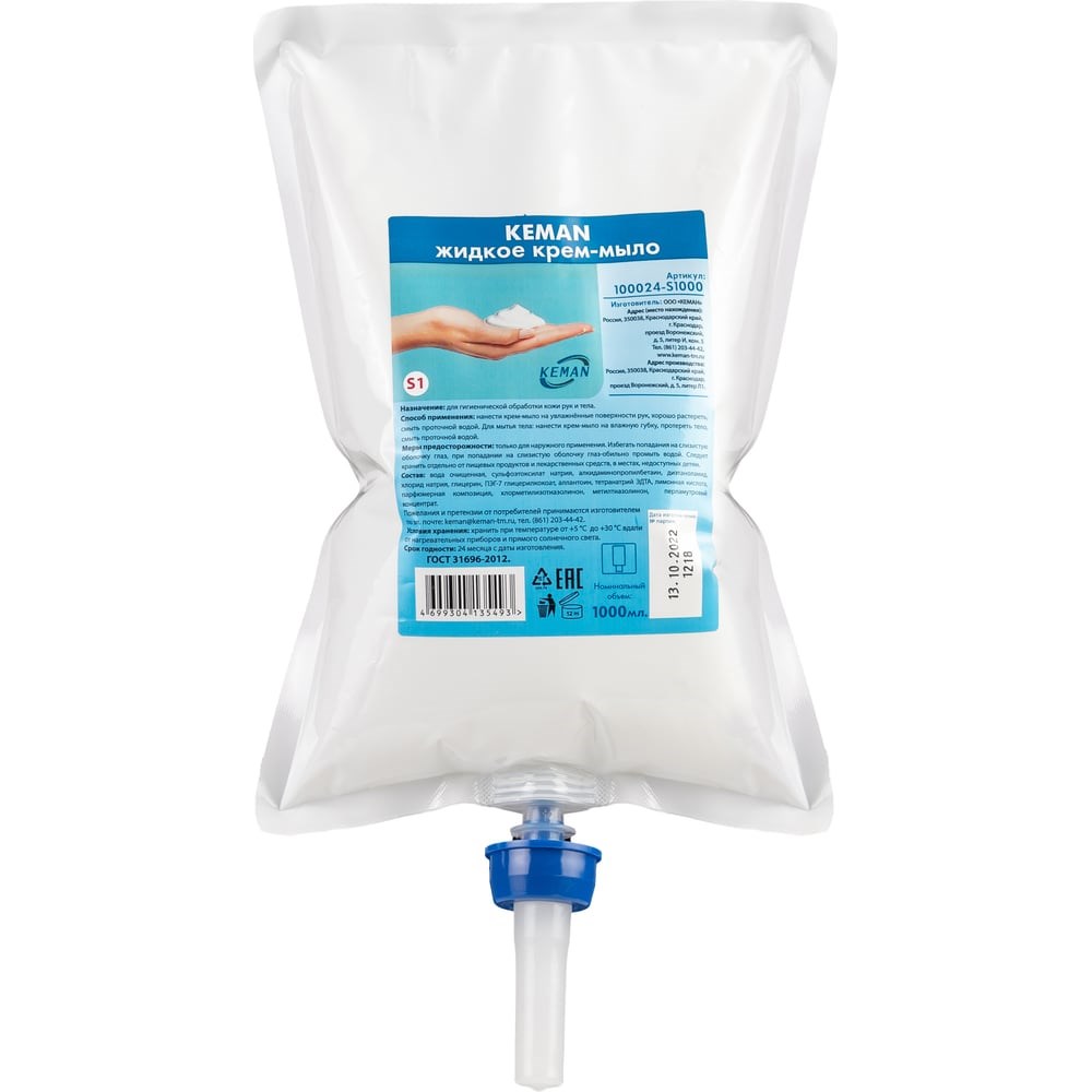 Предназначено для использования в диспенсерах зарубежного производителя: S1. В картридже объемом 1000 мл - 1000 порций. KEMAN Жидкое крем-мыло содержит увлажняющие и восстанавливающие ингредиенты, которые бережно ухаживают за кожей во время мытья рук, тела.