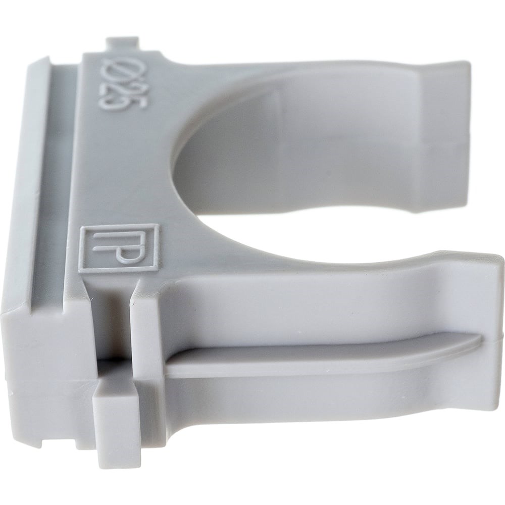 Крепёж-клипса для труб Промрукав Полистирол д25 100 шт. PR.02725 используется для фиксации пластиковых труб к стене, потолку или полу. Для монтажа элемента предусмотрено технологическое отверстие под саморез. Клипсы состыковываются друг с другом с помощью фиксаторов типа "ласточкин хвост".