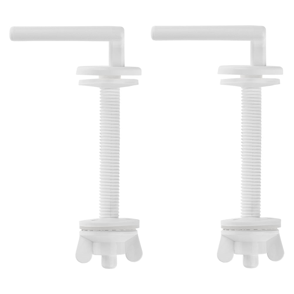 Комплект предназначен для крепления сиденья и крышки к унитазу. Изготовлен из полипропилена, что гарантирует высокую надежность и долговечность. Гайка барашек в комплекте не проскальзывает при закручивании и позволяет быстро и надежно закрепить сиденье и крышку на унитазе. Шероховатая внутренняя поверхность гайки обеспечивает хорошее сцепление с прокладками не позволяя соединению самопроизвольно раскручиваться. Крепления укомплектованы резиновыми прокладками белого цвета, которые не выделяются на фоне большинства унитазов. Смещенный относительно центра шляпки болта кронштейн дает возможность выбора настройки вылета сиденья и крышки относительно унитаза до 30 мм. Удлиненная ножка кронштейна - 45 см, а также резьбовой части крепления - 90 мм, позволяет использовать набор для большого модельного ряда сидений. Безрезьбовой участок болта 7 мм позволяет легче монтировать гайку.