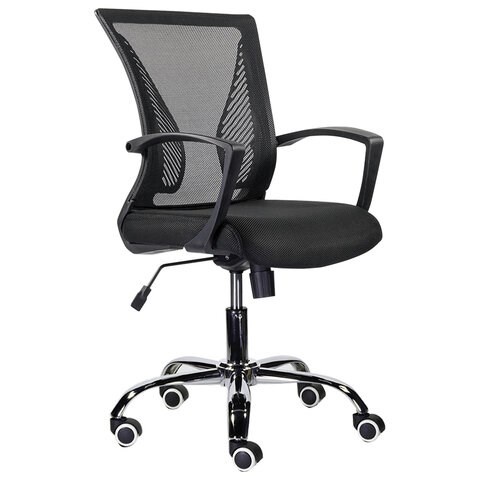 Кресло BRABIX "Wings MG-304", пластик черный, хром, сетка, черное, 532016