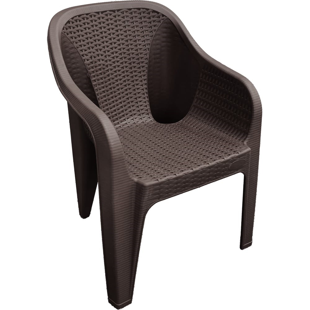 Кресло RAMBO выполнено из высокопрочного полипропилена, не боится солнца, дождя и перепадов температур, легко моется. Рисунок - ротанговое плетение по всему корпусу. Глубокое сиденье, широкие подлокотники - отдыхать нужно с удовольствием.