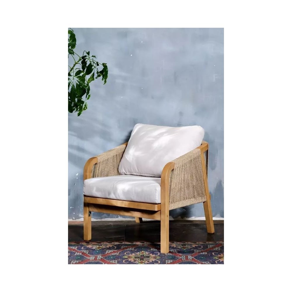RIMINI – дизайнерская коллекция садовой мебели из акации, выполненная в комбинации веревочного плетения ROPE, массива акации и бежевых подушек. Cпокойные округлые линии мебели из этой коллекции в сочетании с пастельными тонами плетения и подушек создадут отличную атмосферу для приятного отдыха. Красивый светлый тон натурального дерева и его приятная фактура, верёвочное плетение из натуральных материалов, фактурные пастельные подушки - получите уникальный предмет садовой мебели со своим неповторимым лицом и шармом. Диваны и кресла этой коллекции отличаются чрезвычайно комфортной и удобной посадкой, кресла широкие и глубокие, из мягких подушек не захочется вставать. Обеденные кресла имеют подушку под спину, что дает дополнительный комфорт. RIMINI – это стиль и элегантность на вашей веранде.