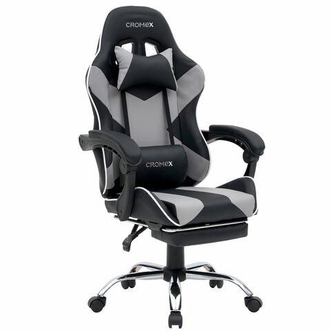 Кресло компьютерное CROMEX (КРОМЕКС) "Wave GM-145", вибромассаж, подножка, подушки, экокожа, черное/серое, 532956