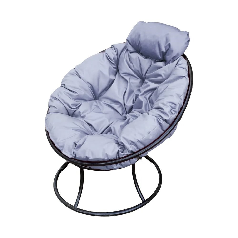 Кресло с подушкой, входящей в комплект имеет небольшой размер, что позволяет его разместить в помещении Вашей квартиры, лоджии, балкона. Ну и конечно же в нем так приятно будет отдыхать от городской суеты на свежем воздухе в загородном доме или на дачном участке. Такое кресло придаст изысканный вид любому интерьеру. Кресло выполнено из металла 20х1,2 мм( внешнее) и внутреннее оплетение 12х1,2 мм. В комплект входит подушка, выполненная из водоотталкивающей ткани Оксфорд 600. Кресло позиционируется как всепогодное-стальной каркас, покрытый порошковой краской, устойчив к ржавчине. Диаметр подушки - 90 см Подголовник 40х20 см.