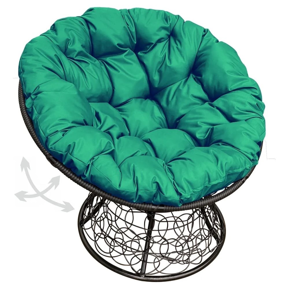 Кресло M-GROUP ПАПАСАН пружинка, с ротангом, черное, зеленая подушка