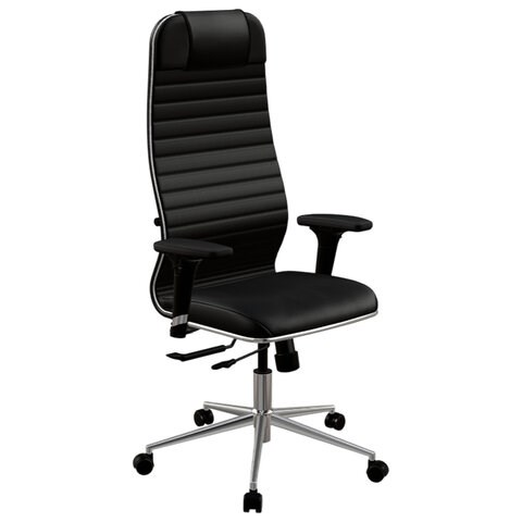 Кресло МЕТТА "ErgoLife" 10 B1-117D, хром, синхромеханизм, 2D-подлокотники, экокожа, черное